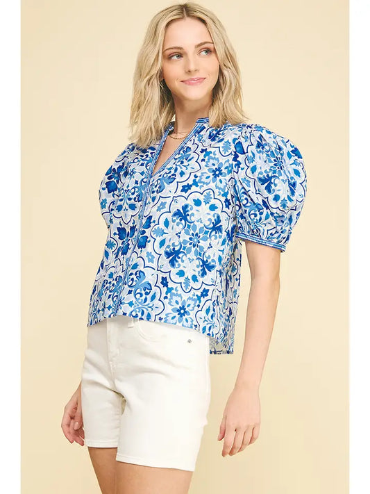Mary Square: Alli Pajama Shorts Set | Meadow Dreams Blue