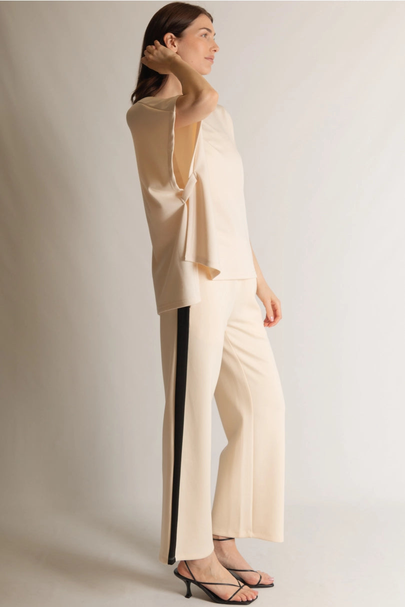 Boxy silhouette, wide neckline, short sleeves, and a modern, minimalist design perfect for casual or elevated everyday wear.