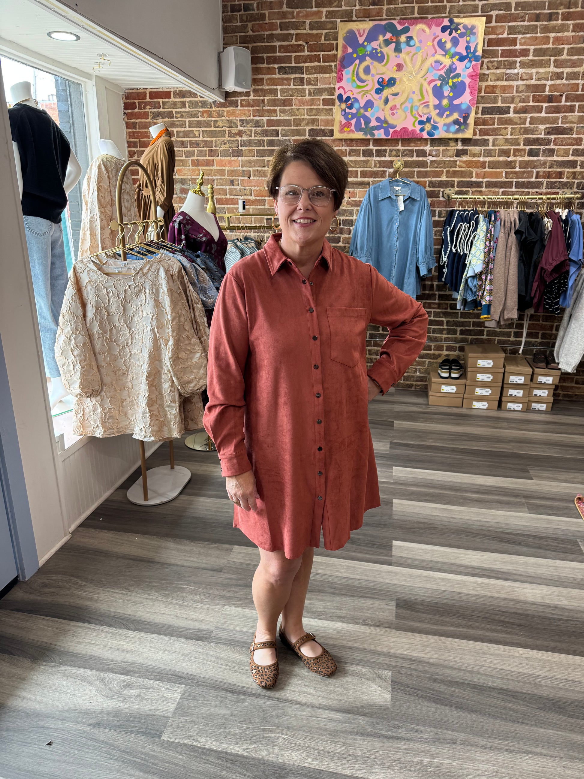 Long Sleeve Mini Faux Suede Shirt Dress