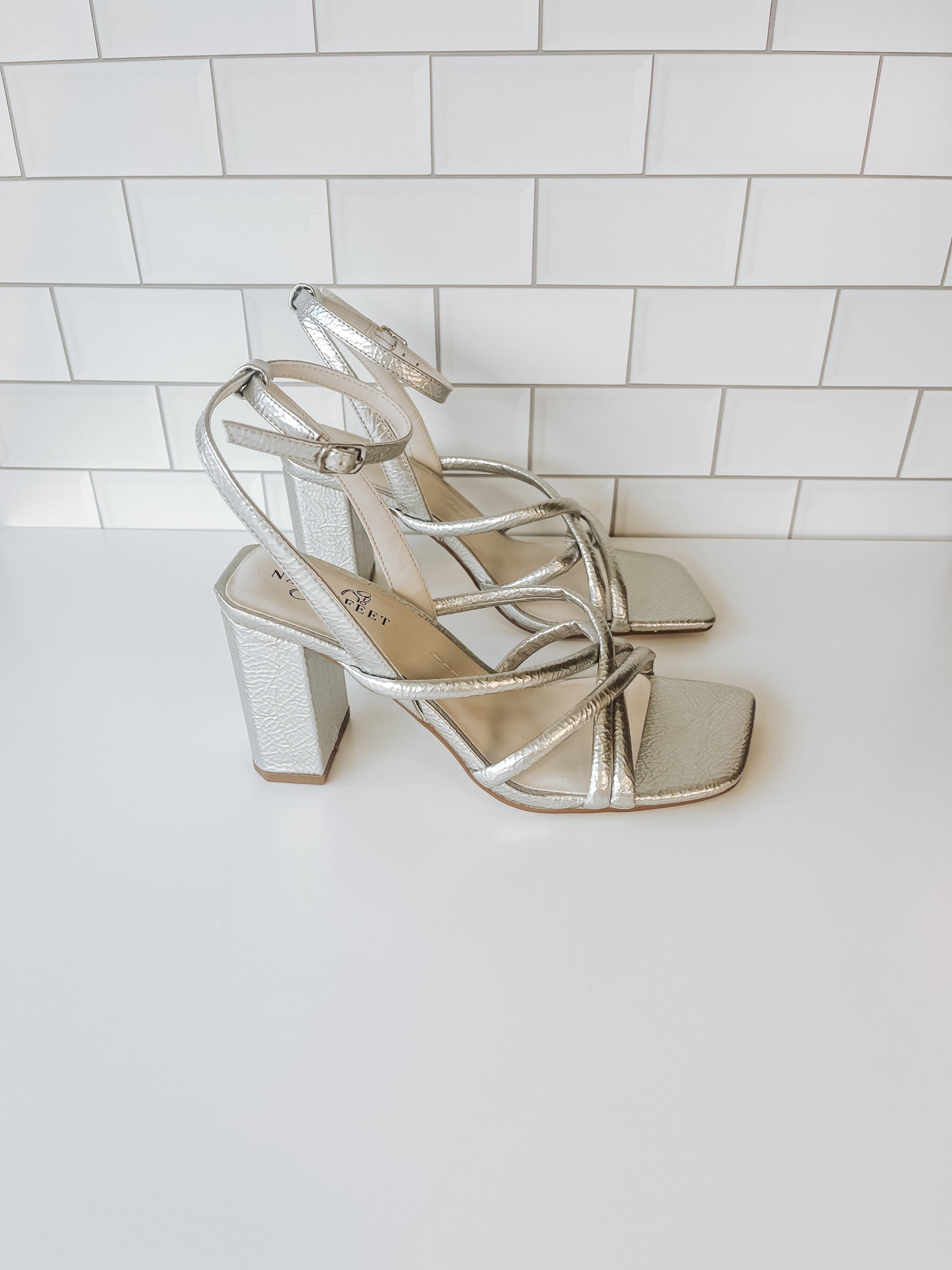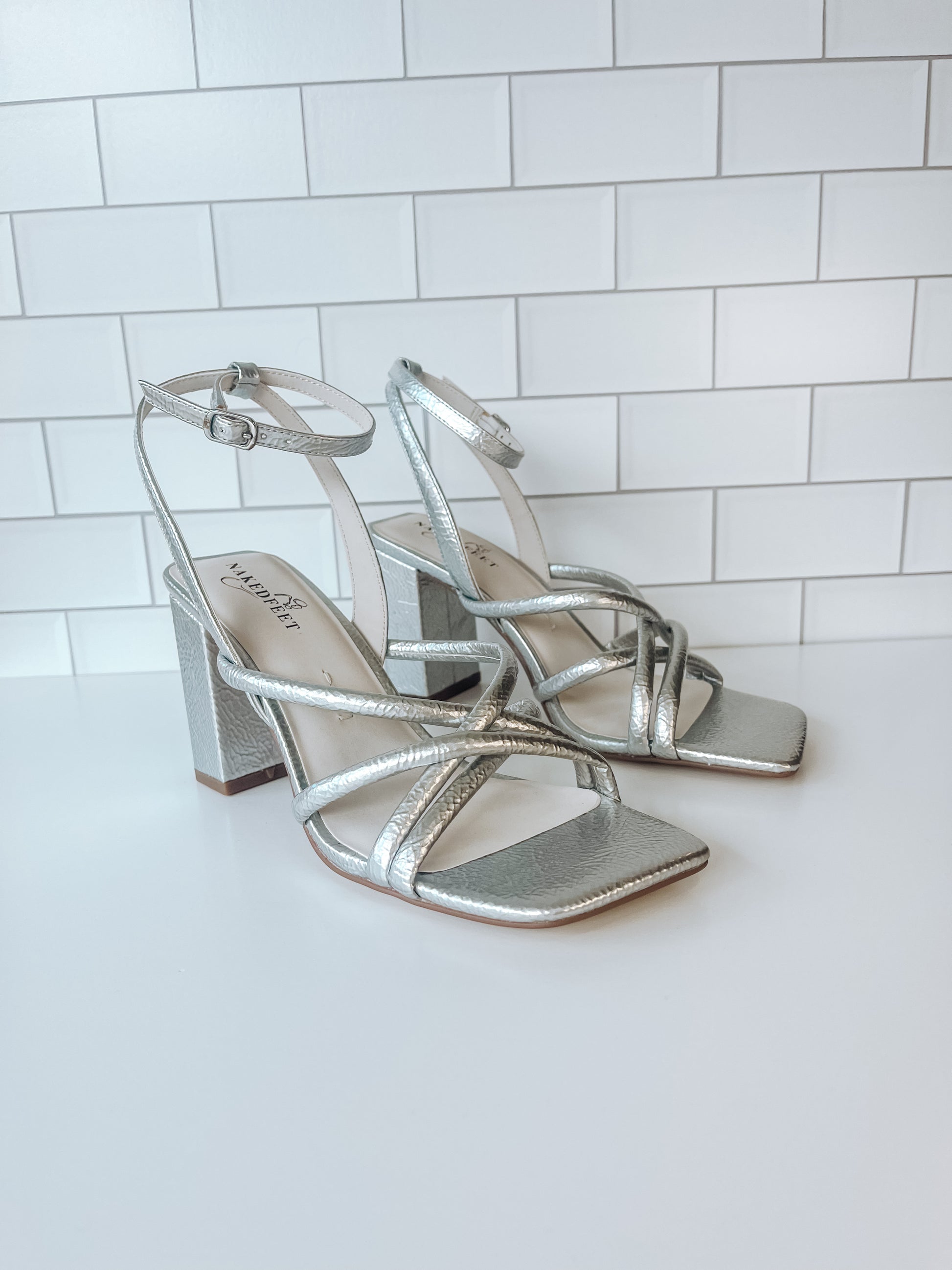Mood is the thin strap sandal silhouette that truly elevates every outfit in your wardrobe. The architectural heel and barely-there straps is a sexy, yet super wearable design. Wear to your next occasion or integrate into your wardrobe as an effortless way to dress up your everyday essentials. This high gloss silver hue is a futuristic hue that doubles as a jewelry for your feet.
