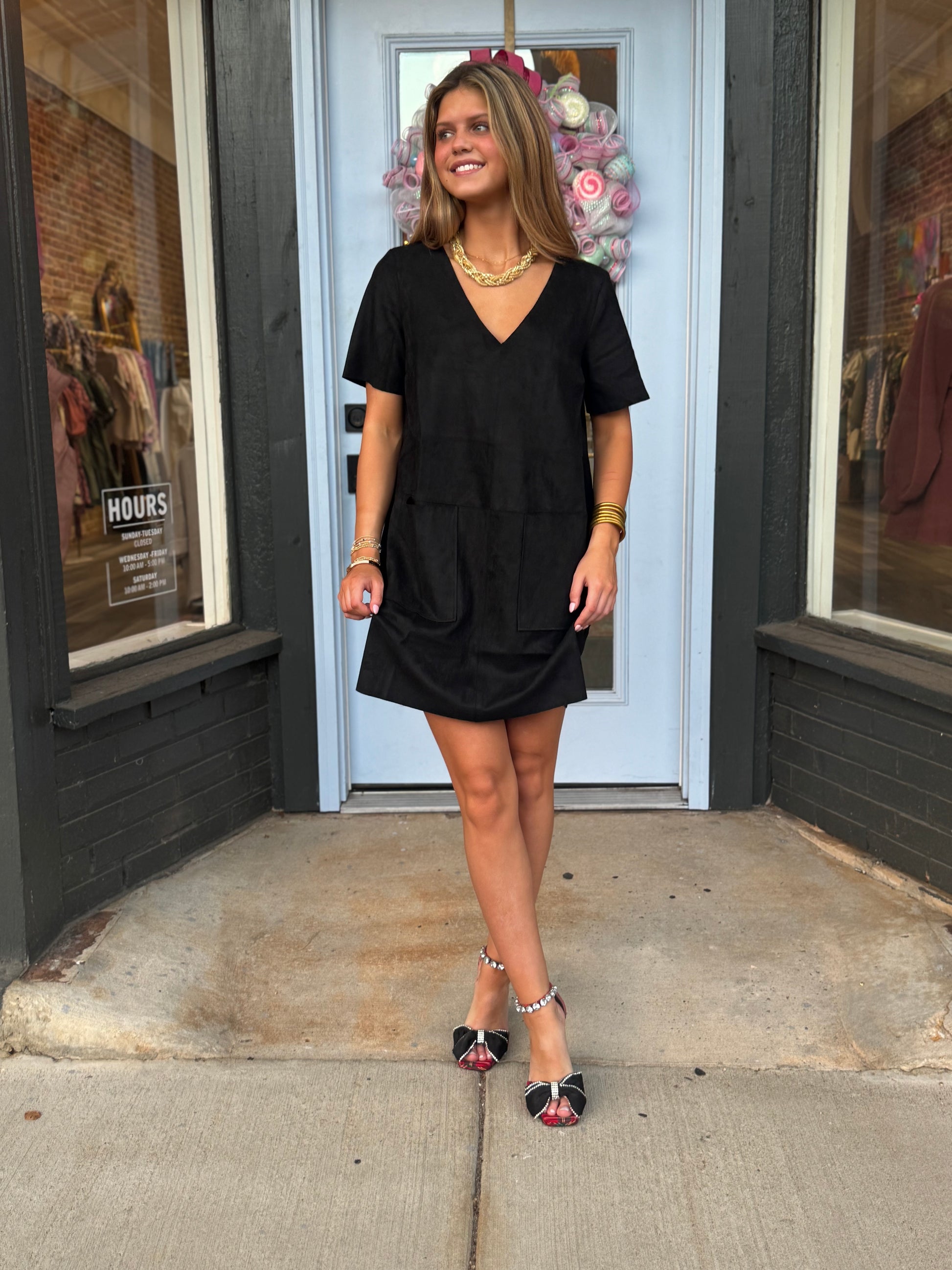 This Micro Suede V-neck Dress offers a luxurious feel with its soft, micro suede fabric. Its v-neck design adds a touch of elegance, making it a versatile choice for both casual and formal occasions. The fabric is also wrinkle-resistant, ensuring a polished look every time.