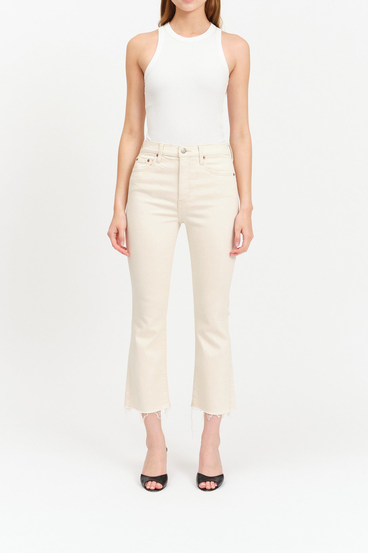 Chloe Shy Girl High Rise Crop Flare Denim in Raw Cut